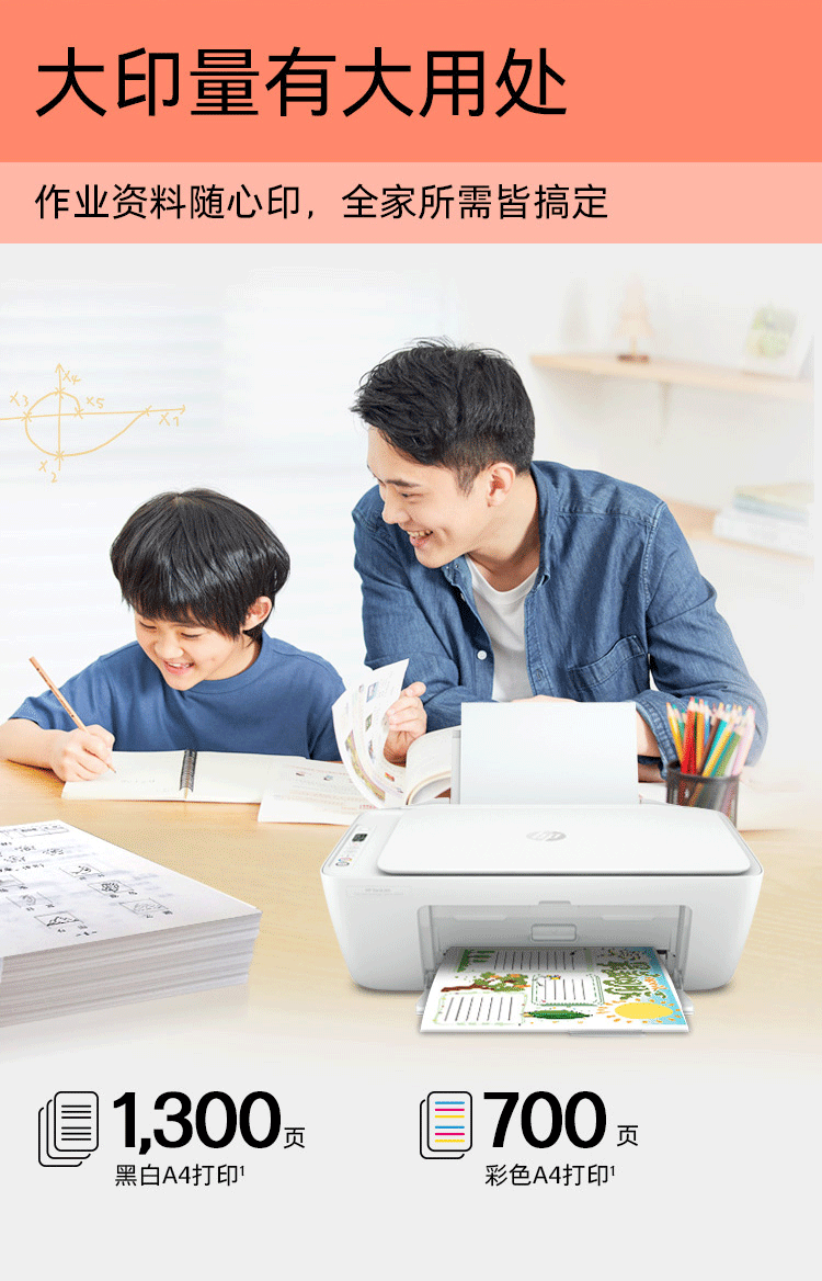 惠普(HP)DJ 2720 无线彩色喷墨家用打印机学生家用打印照片打印机 扫描复印多功能一体