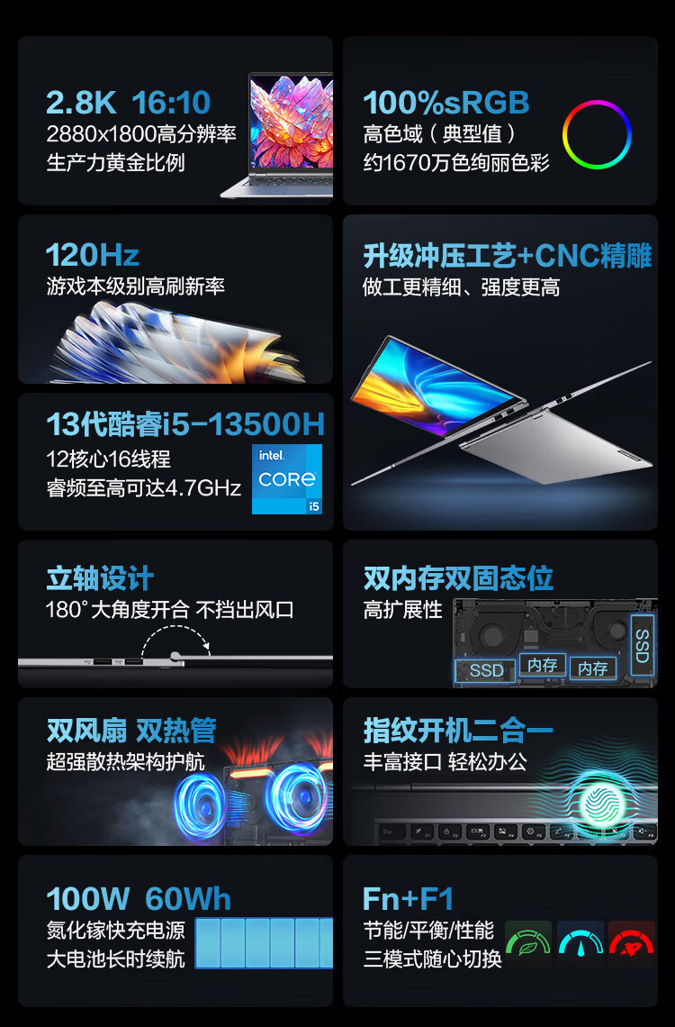 商品名称:机械革命无界14Pro (i5-13500H 16G 1T 120Hz 2.8K 高色域)13代标压轻薄本办公商务本游戏本笔记本电脑