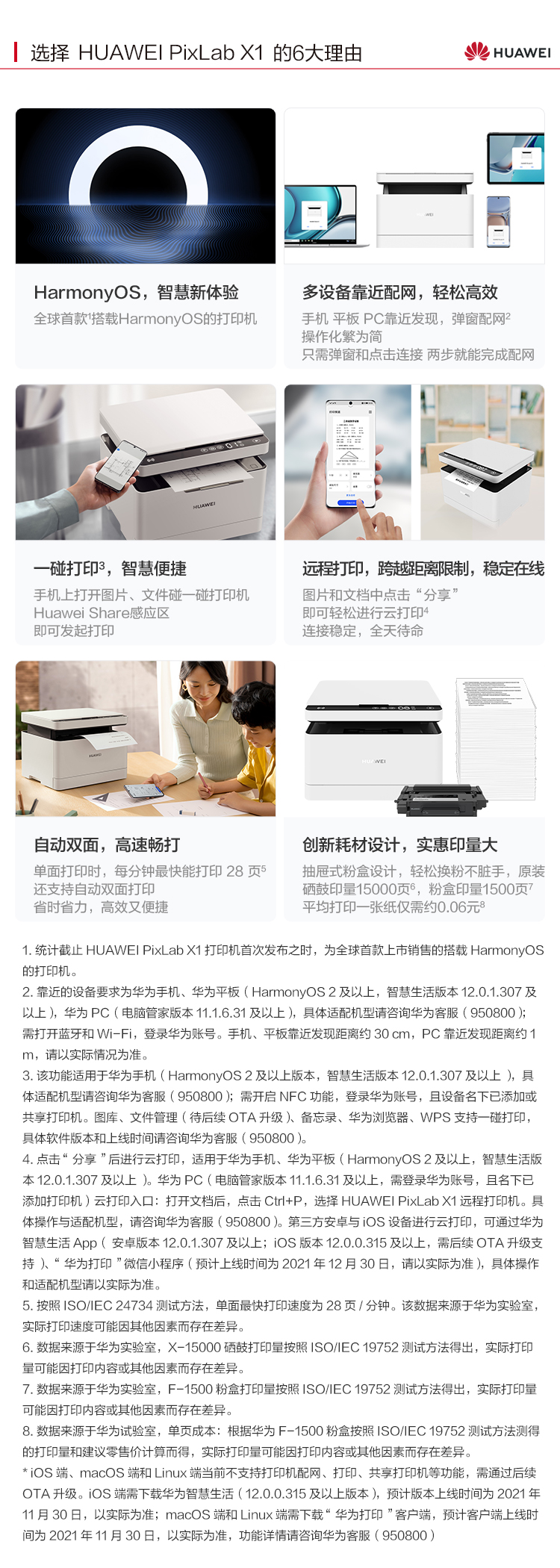 商品名称:华为(HUAWEI)黑白激光多功能打印一体机 办公商用学生家用/打印复印扫描三合一/自动双面/无线打印 PixLab X1