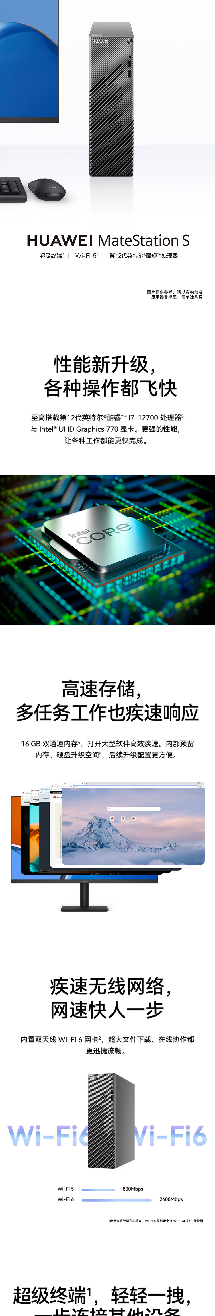商品名称:华为HUAWEI MateStation S 12代酷睿版商务台式机电脑整机(i5-12400/16G/256GSSD+1THDD集显 WIN11)23.8英寸
