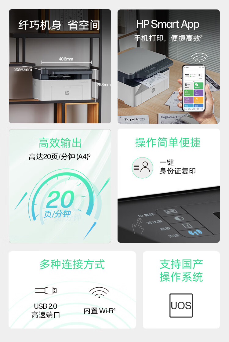 商品名称:惠普(HP)1136w 黑白激光打印机多功能家用办公打印机 复印扫描无线商用办公(136w升级版)