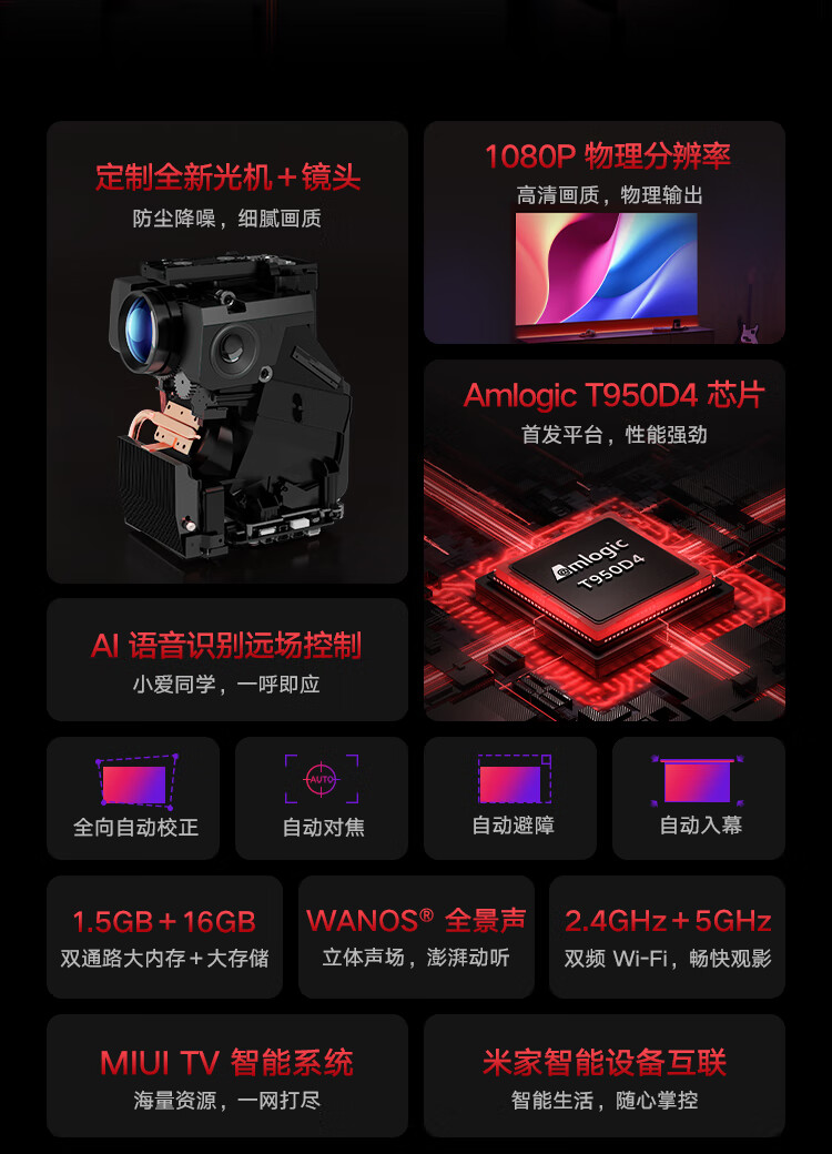 商品名称:小米 Redmi 投影仪 Pro 家用投影机 智能家庭影院(1080P物理分辨率 全向自动校正 自动避障 米家智能 )