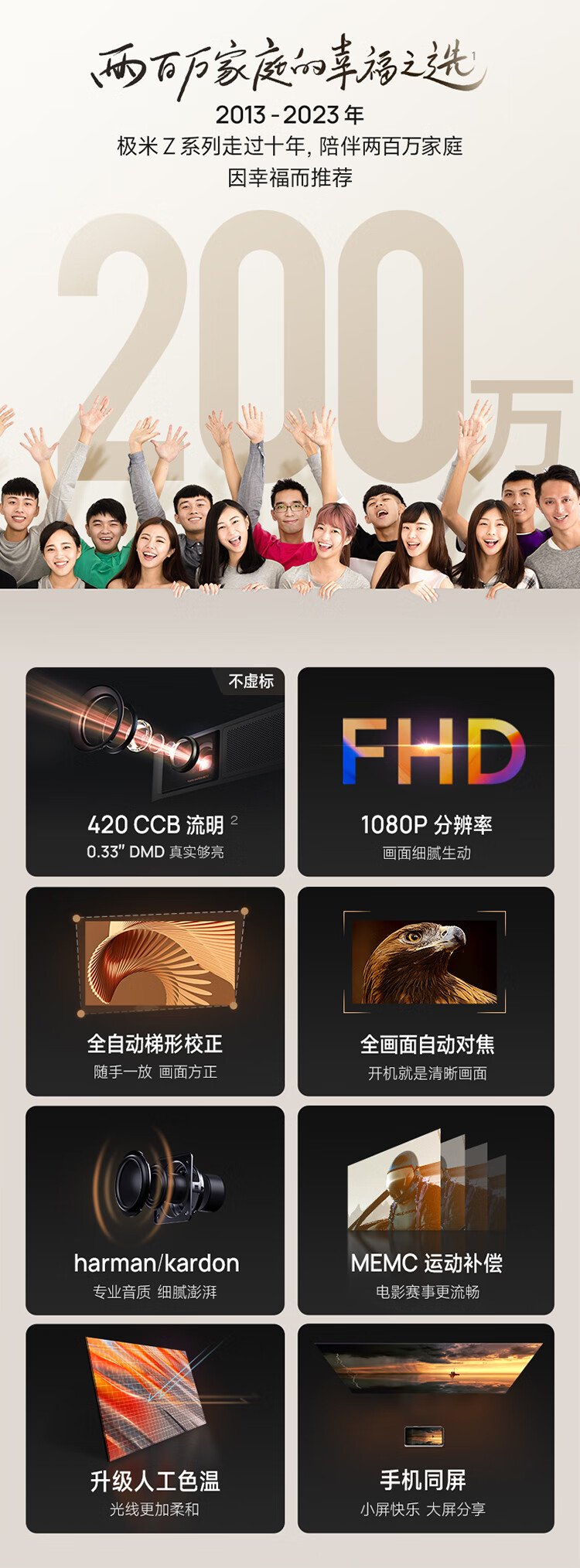 极米NEW Z8X 投影仪家用 投影机 智能家庭影院(真实高亮 哈曼卡顿原装音响 全自动梯形校正)